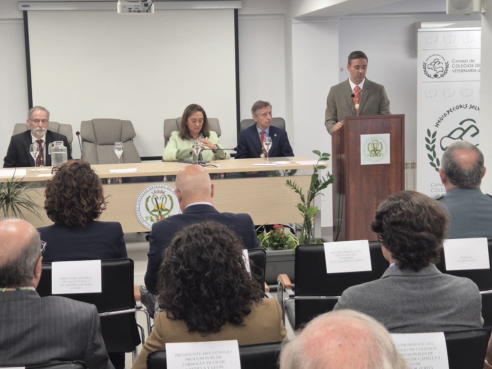 Al acto acudieron, entre otros, el viceconsejero de Política Agraria Comunitaria y Desarrollo Rural, Jorge Llorente; el director general de Producción Agrícola y Ganadera, Rubén Serrano; la directora general de Salud Pública, Cristina Granda –los tres veterinarios-; el director general de Patrimonio Natural, José Ángel Arranz; el vicesecretario de la Academia de Ciencias Veterinarias de Castilla y León, Vicente González Eguren, así como representantes de otros colegios profesionales sanitarios, organizaciones agrarias, Real Academia de Medicina y Cirugía y mandos del Seprona, entre otros.