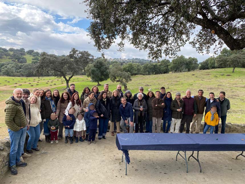 El pasado domingo tuvo lugar la visita organizada por el Colegio de Veterinarios de Sevilla a la ganadería de bravo Soto de la Fuente, ubicada en la localidad de Las Pajanosas, a la que asistieron cuarenta personas incluyendo colegiados, familiares y allegados, en una cita con un marcado carácter profesional, didáctico y también familiar que resultó del agrado de los asistentes.
