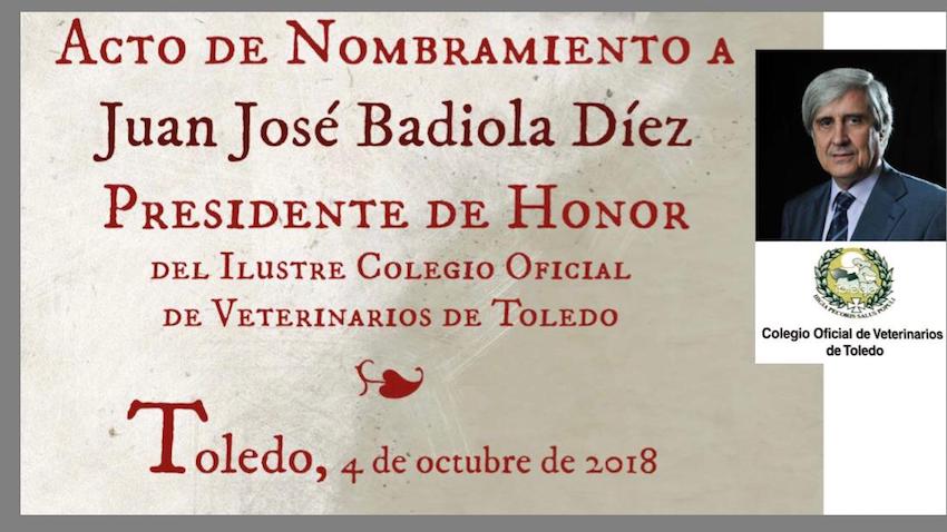 El Colegio Oficial de Veterinarios de Toledo celebró el 4 de octubre la onomástica de su Patrón, San Francisco de Asís, procediendo al nombramiento de Presidente de Honor del Colegio de Veterinarios de Toledo a Juan José Badiola Díez, presidente de la Org